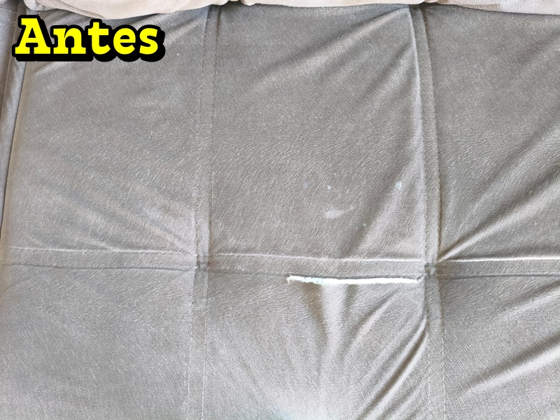 • Colocar um tecido forrando o sofá todo, mas o furo vai continuar ali e vai abrir mais e desfiar com o tempo de uso.