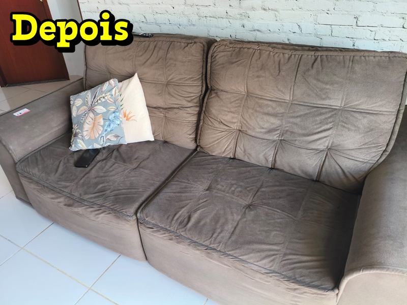 Veja um exemplo disso nas fotos abaixo e veja o que a cliente achou no nosso conserto localizado que fizemos no sofá dela: