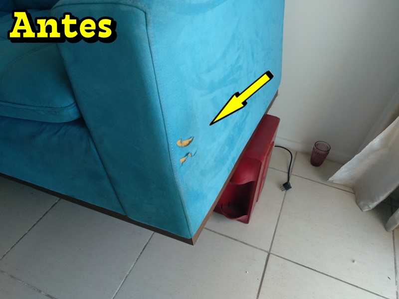 Veja um exemplo disso nas fotos abaixo e veja o que a cliente achou no nosso conserto localizado que fizemos no sofá dela: