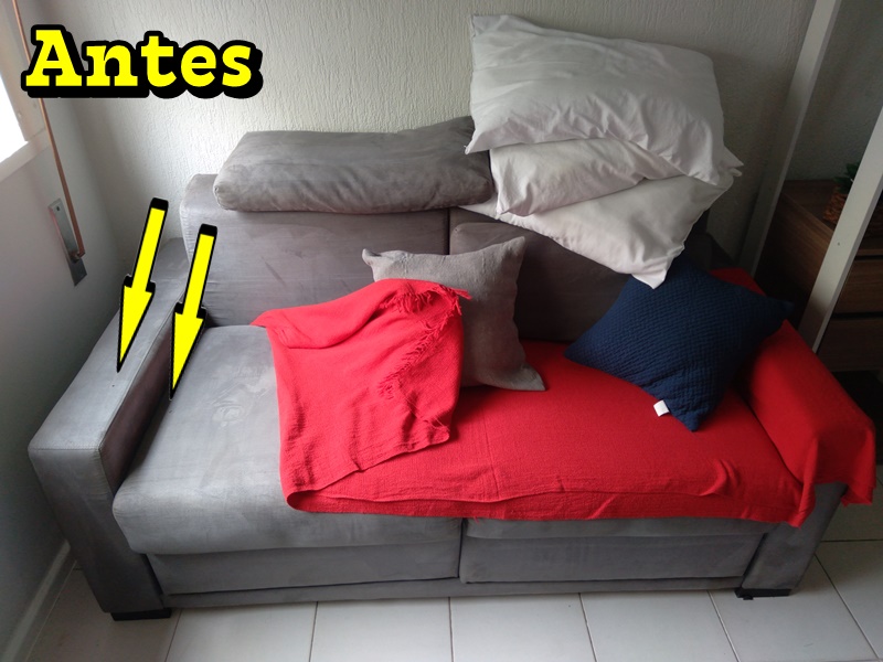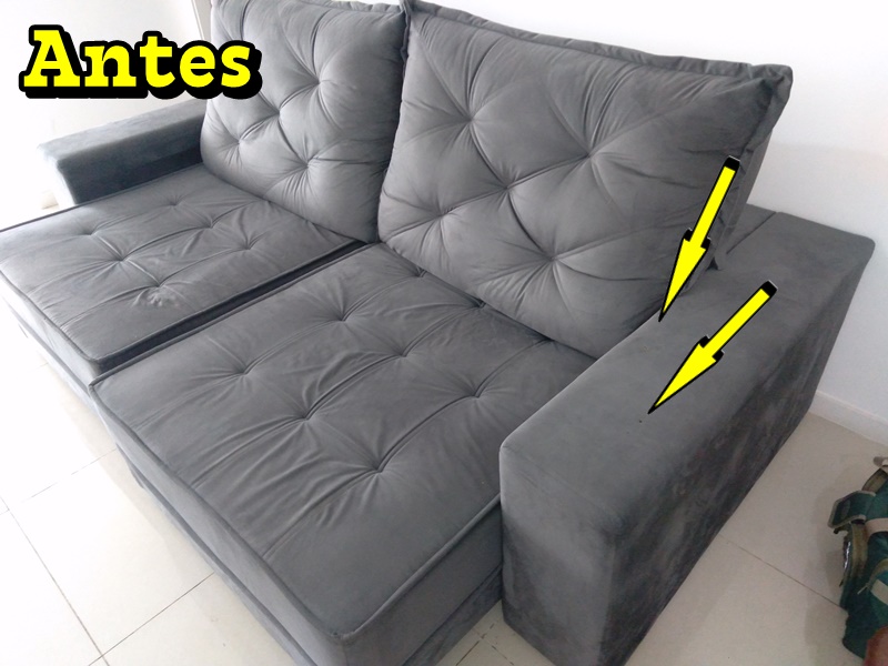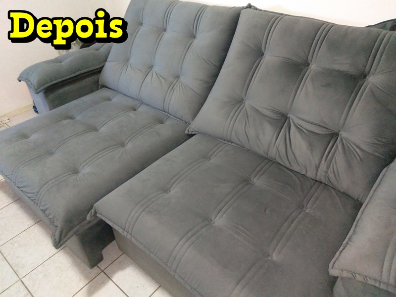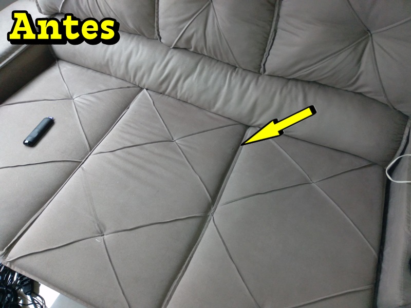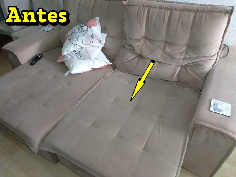 Sofá Retrátil Suede Com Dois Furos De Cigarro Que Recuperamos.