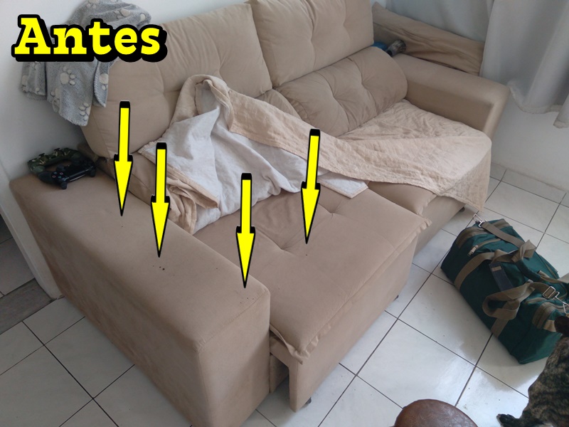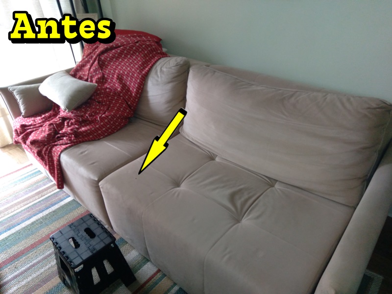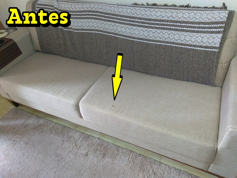 Sofá Com 4 Furos De Cigarro Restaurado Sem Trocar O Tecido.