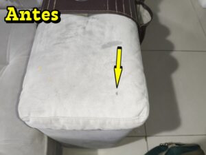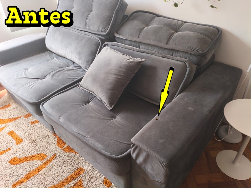 Furo No Braço Do Sofá Restaurado.