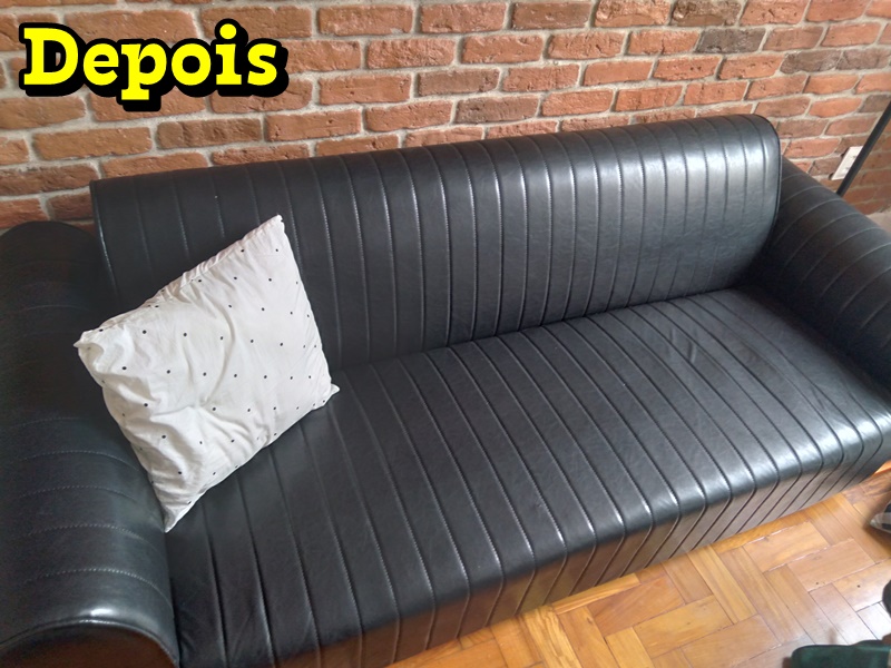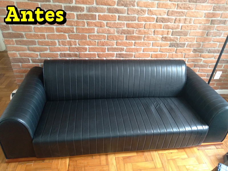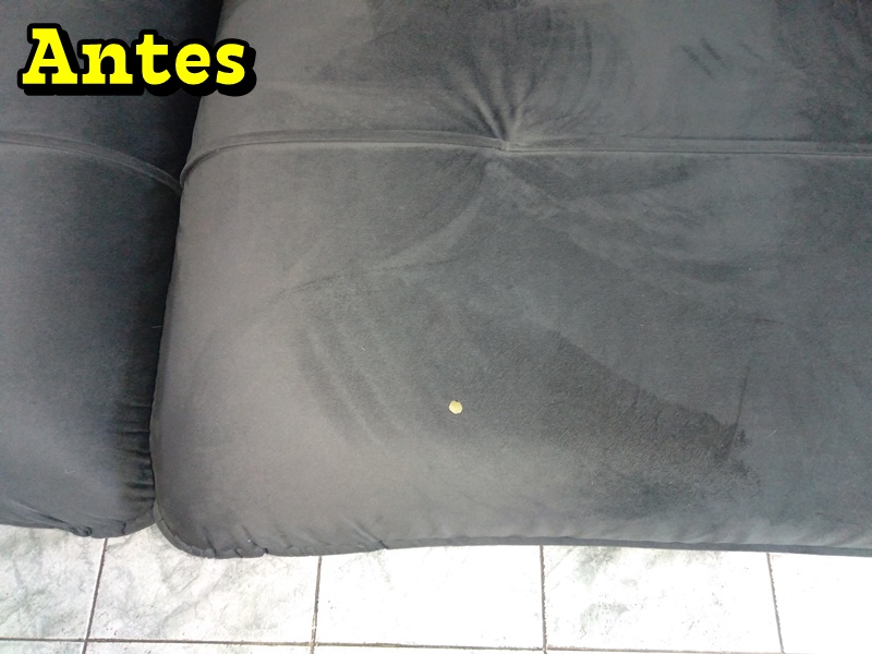 Sofá Preto Com 2 Furos De Cigarro Restaurado Em Niterói.