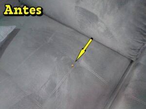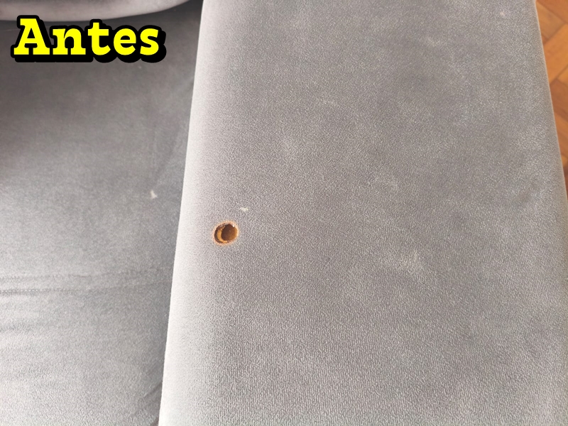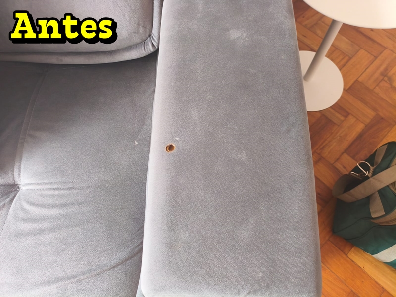 Conserto Localizado Em Sofá De Suede Com Furo De Cigarro.