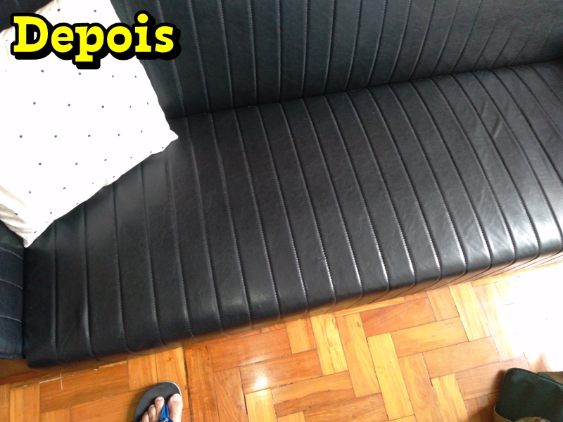 Sofá Em Couro Sintético Com Furo De Cigarro Que Restauramos.